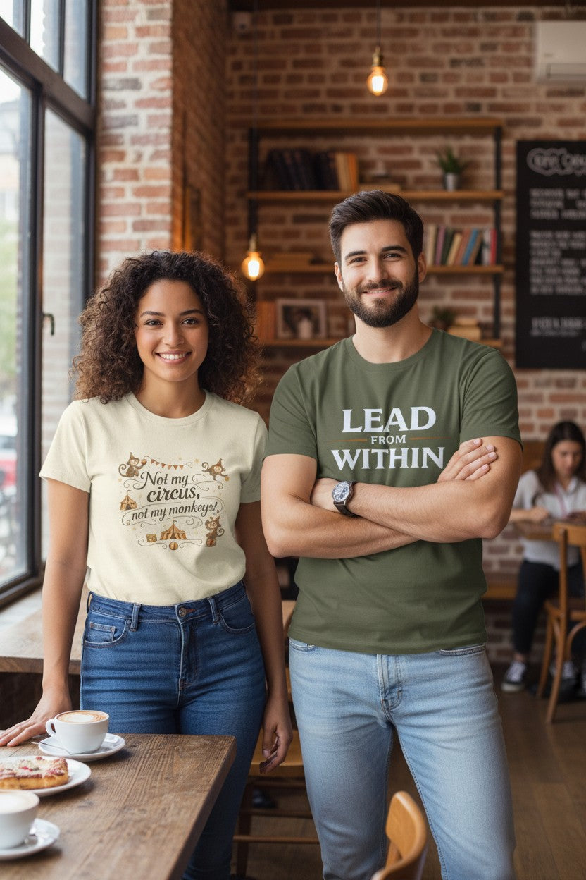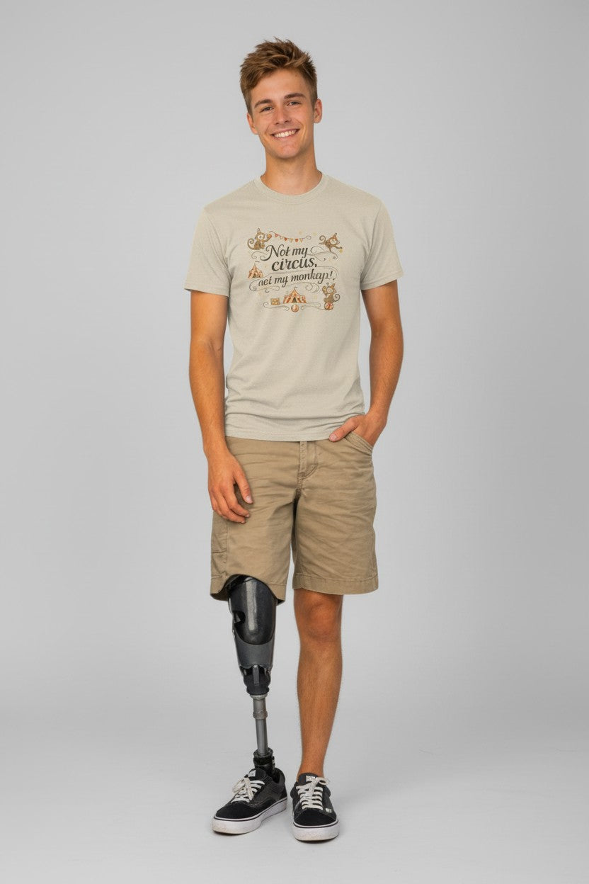 Soft, laid-back, and quietly funny — this classic tee brings a touch of woodland whimsy to everyday wear. Lightweight 100% cotton holds prints clearly and feels breathable on long walks, lazy mornings, and quick coffee runs. The small, centered graphic mixes hand-drawn monkeys, tiny tents, and subtle nature motifs around the phrase “Not my circus, not my monkeys!” — a gentle, wry reminder to keep your calm when life gets noisy. The crew neckline and relaxed cut sit comfortably under jackets or on their own, while the tear-away label keeps the neck itch-free. Wear it to gatherings with friends, camping weekends, or whenever you need a lighthearted pause in the day.