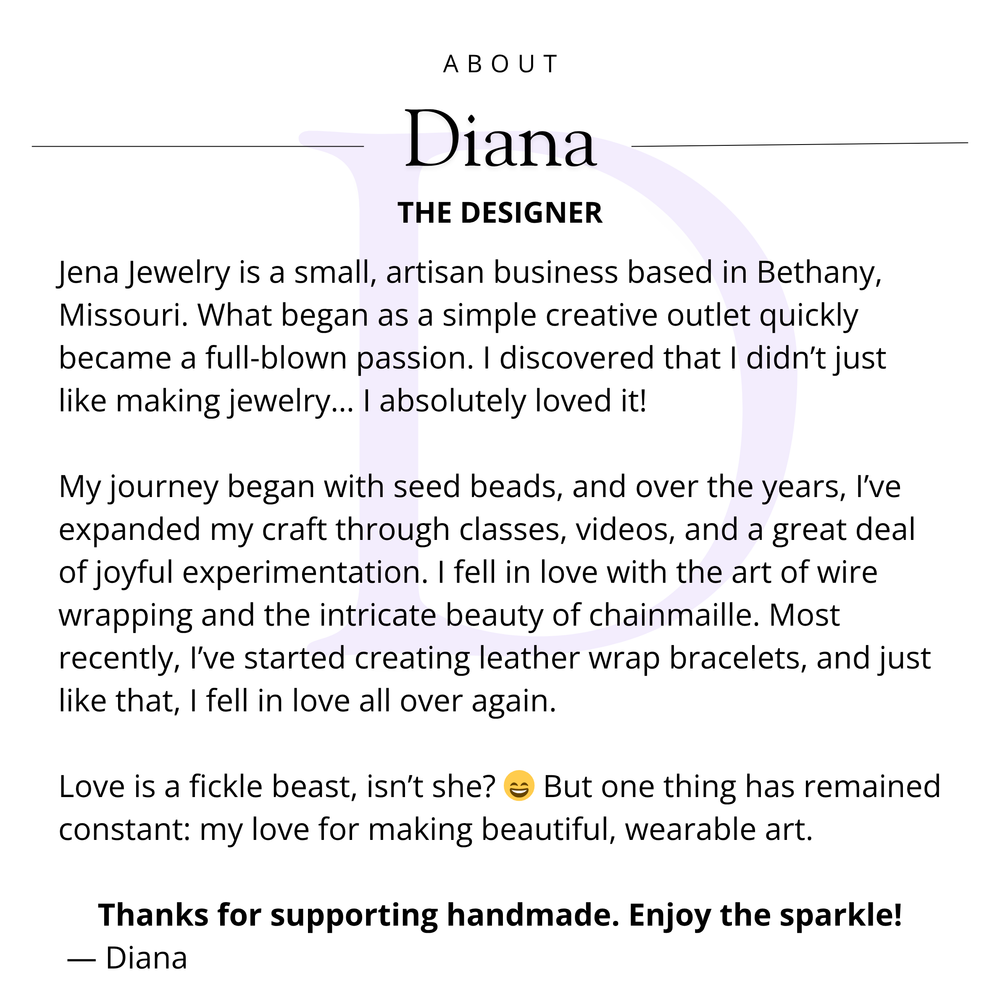 Hello world, I don’t usually purchase my jewelry online but I took a chance with Jena. Wow did it pay off!