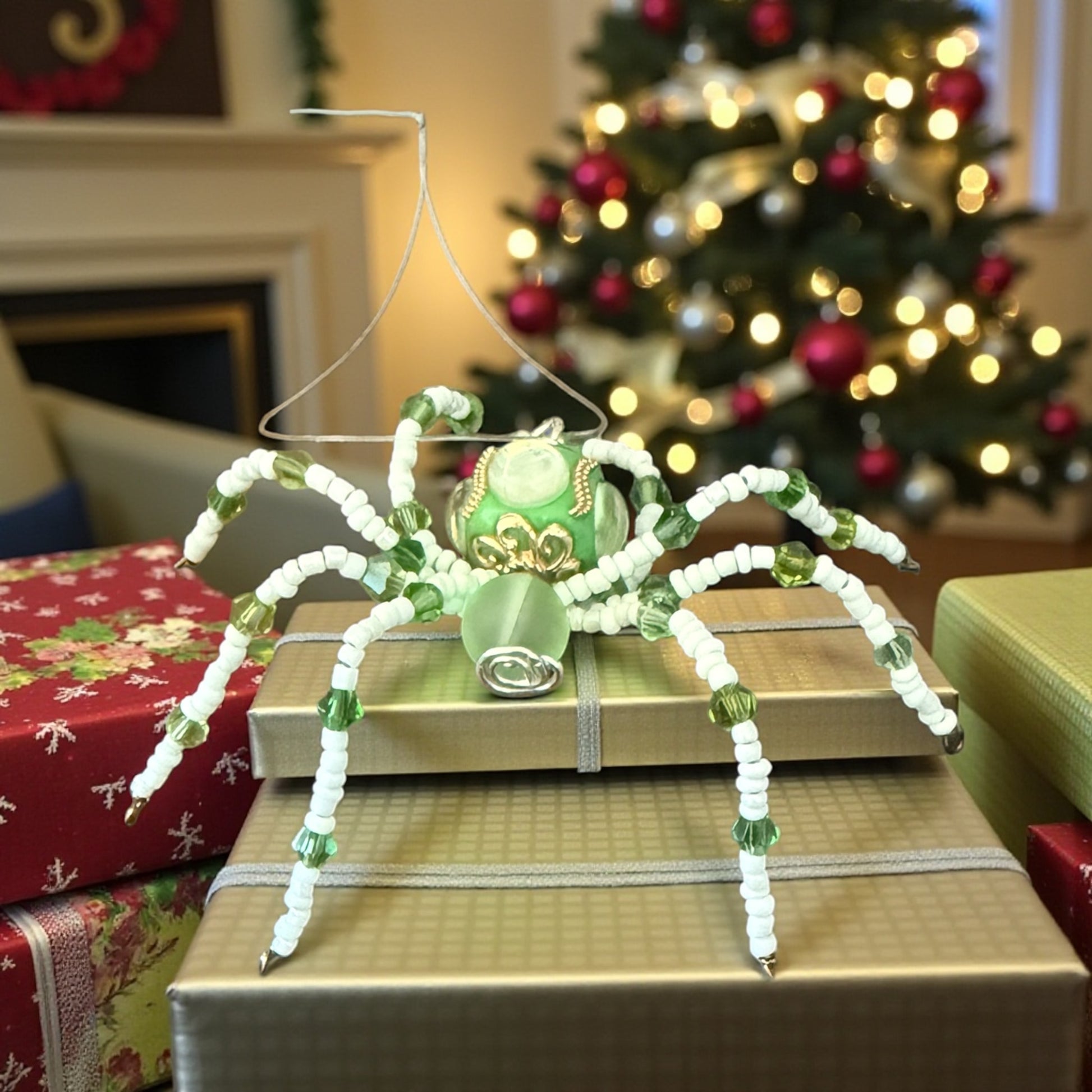 Add a touch of tradition, shimmer, and symbolism to your holiday décor with our handcrafted Christmas Spider Ornaments. Each delicate spider is made using glass beads and wire, inspired by the Eastern European folk tale that says a spider’s web spun on Christmas Eve turned into strands of gold and silver — the origin of tinsel.