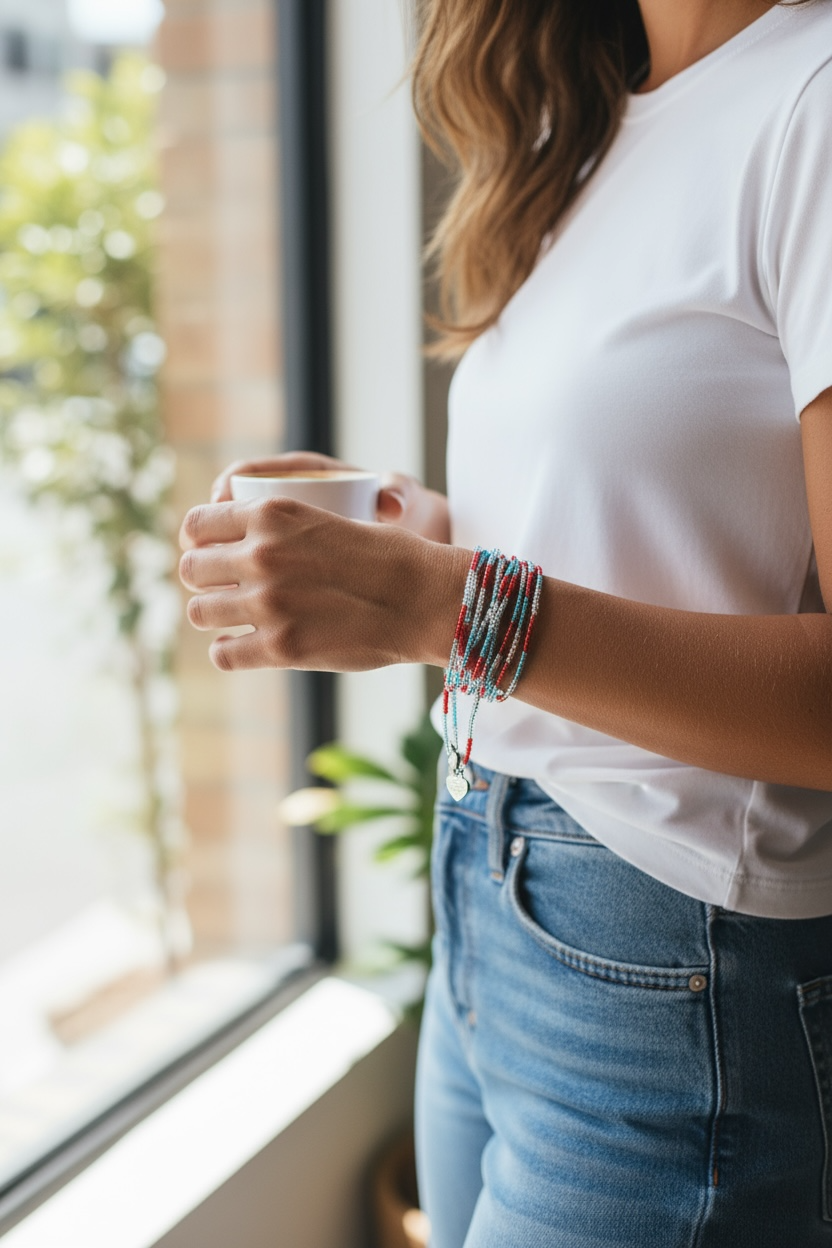 Add a bold pop of personality to any look with our handcrafted seed bead wraps and glasses holders. Designed to celebrate color, texture, and creative flair, each piece is meticulously made with high-quality glass seed beads in unique patterns that reflect your individual style.