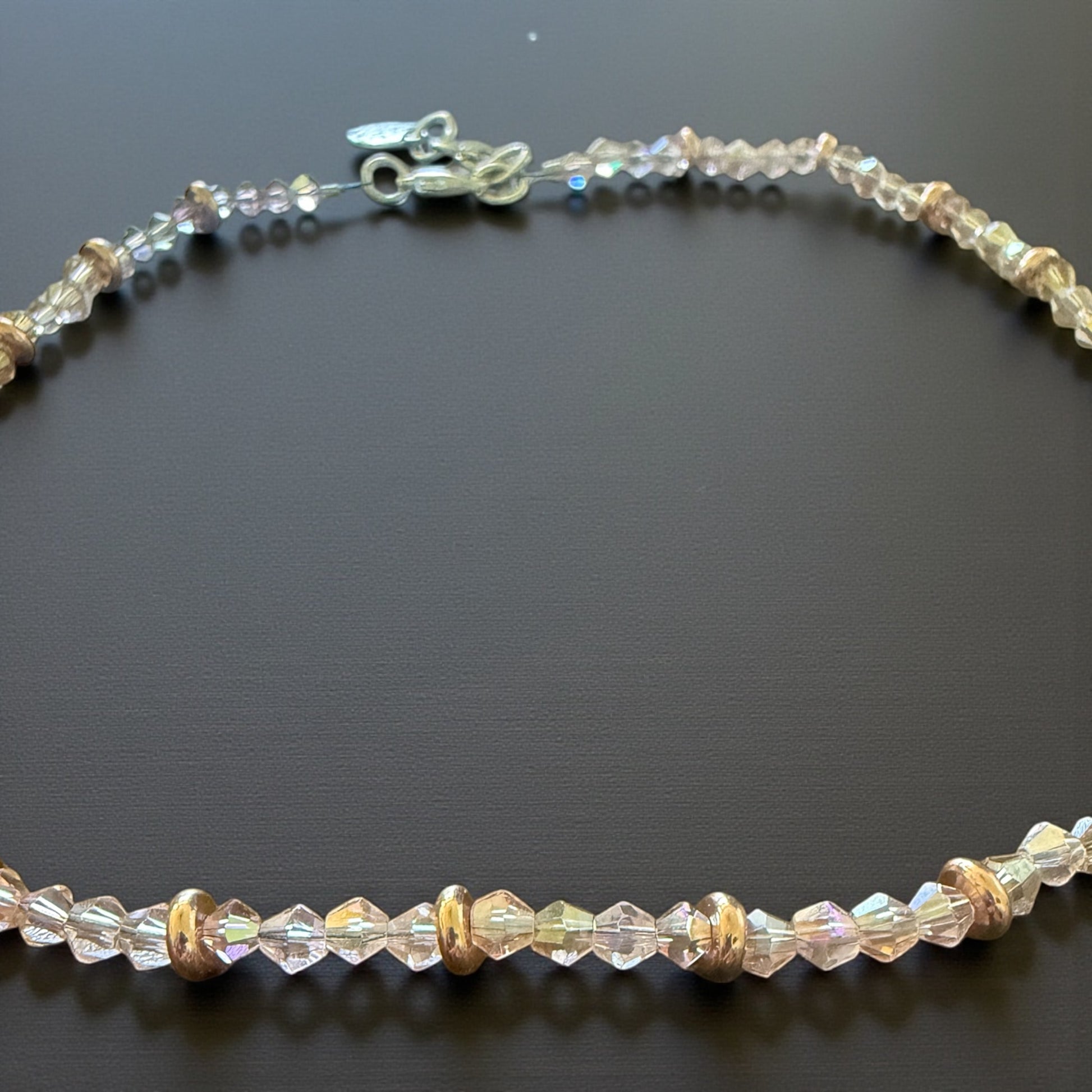 Delicate, elegant, and full of soft energy, this Pink Crystal Necklace is designed to capture the essence of gentle love and graceful power. Hand-strung with shimmering pink crystals and finished with rose gold tone spacers, this necklace brings a romantic glow to any outfit — perfect for gifting, bridalwear, or everyday beauty.