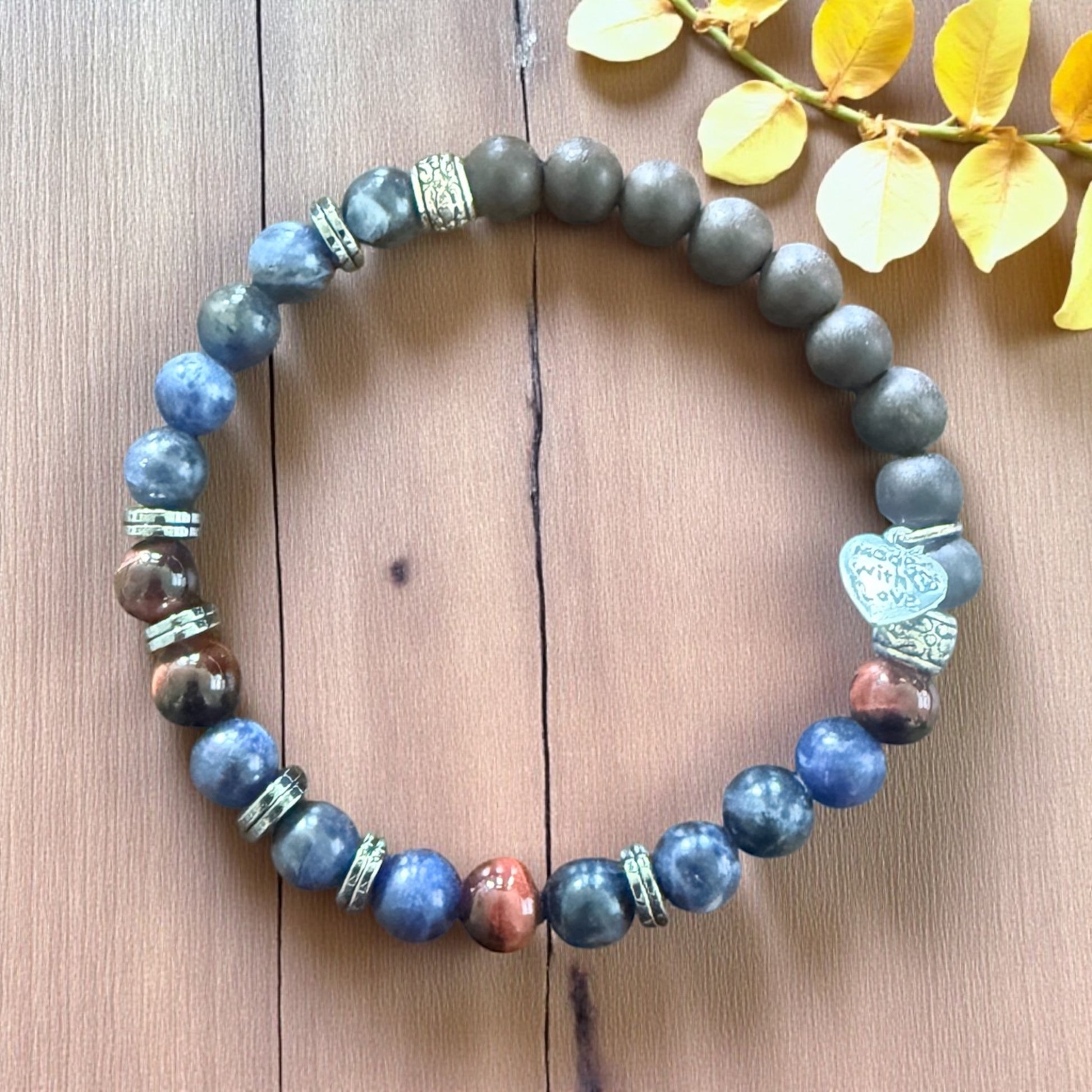 This “Say It With Code” bracelet quietly whispers a powerful message: Breathe,  spelled out in Morse code using a calming mix of red tiger eye, lapis lazuli, hematite, and ebony blackwood mala beads. It’s a meaningful reminder to pause, center, and return to yourself when life feels overwhelming.