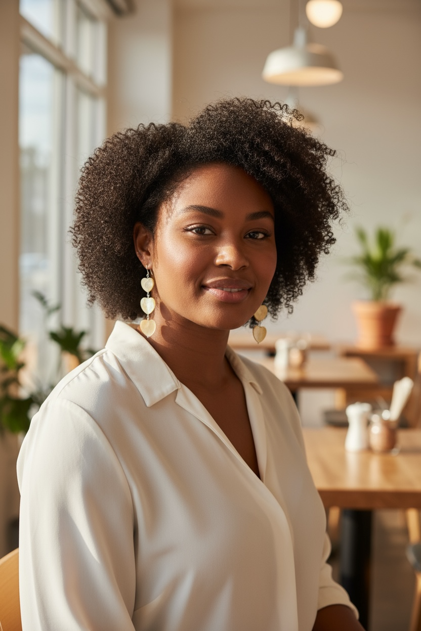 These handcrafted earrings feature delicate tea-dyed Mother of Pearl heart beads, bringing an earthy vintage warmth to their soft iridescent glow. Lightweight and filled with meaning, they’re the perfect blend of natural elegance and spiritual symbolism.
